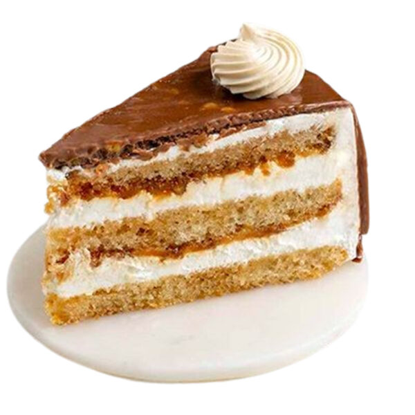 Moist butterscotch pastry made with vanilla cream, homemade butterscotch sauce, crunchy butterscotch and glaze with milk chocolate galze.